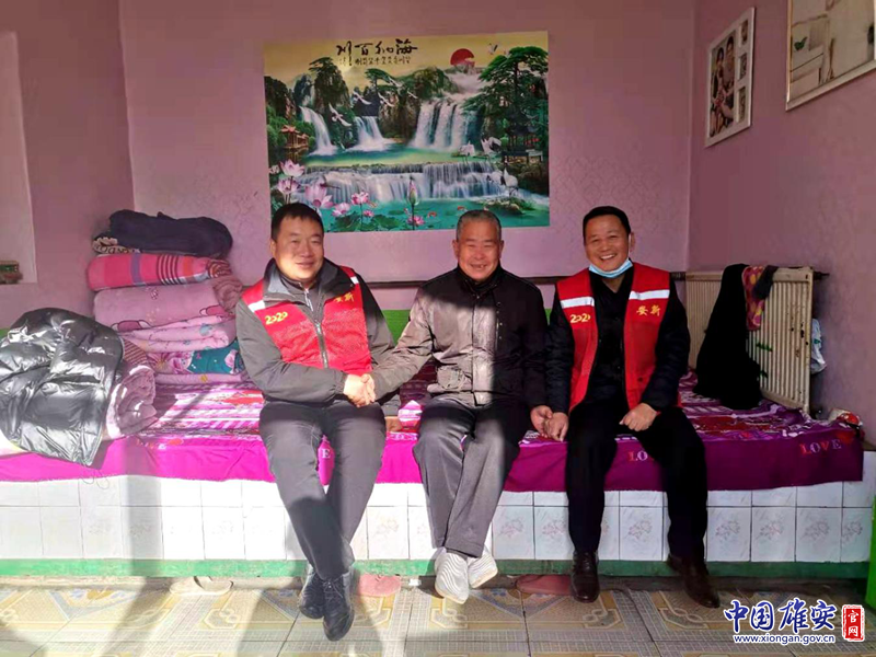 安新县驻村工作组与大王镇北张庄村征迁户张喜春合影。中国雄安官网发