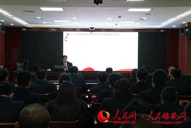 雄安新区中级人民法院全体干警、容城县法院中层正职以上人员及全体法官共50人参加了报告会。(王红)
