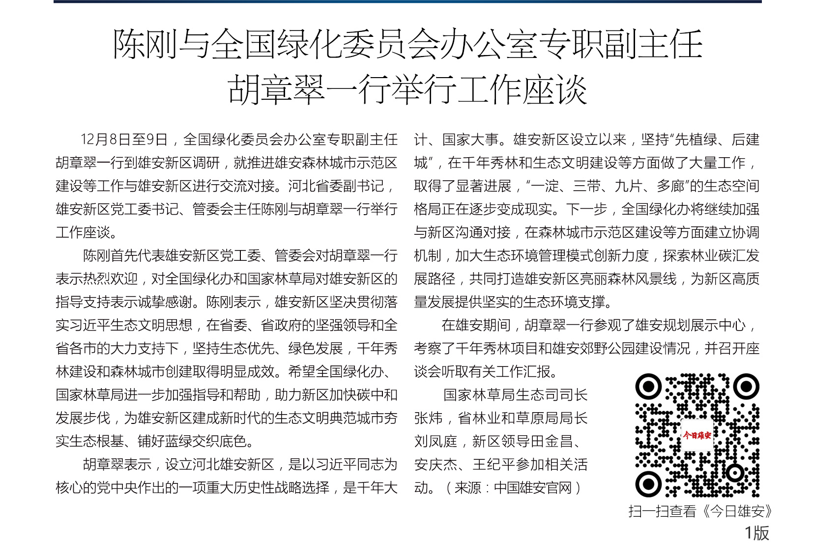 《今日雄安》 2020年12月9日 第385期