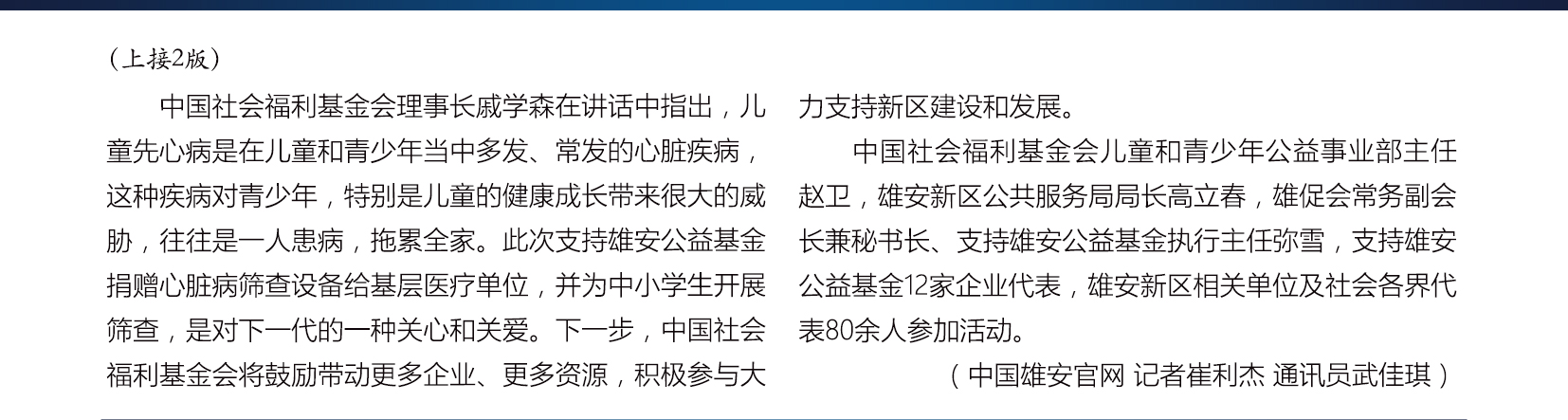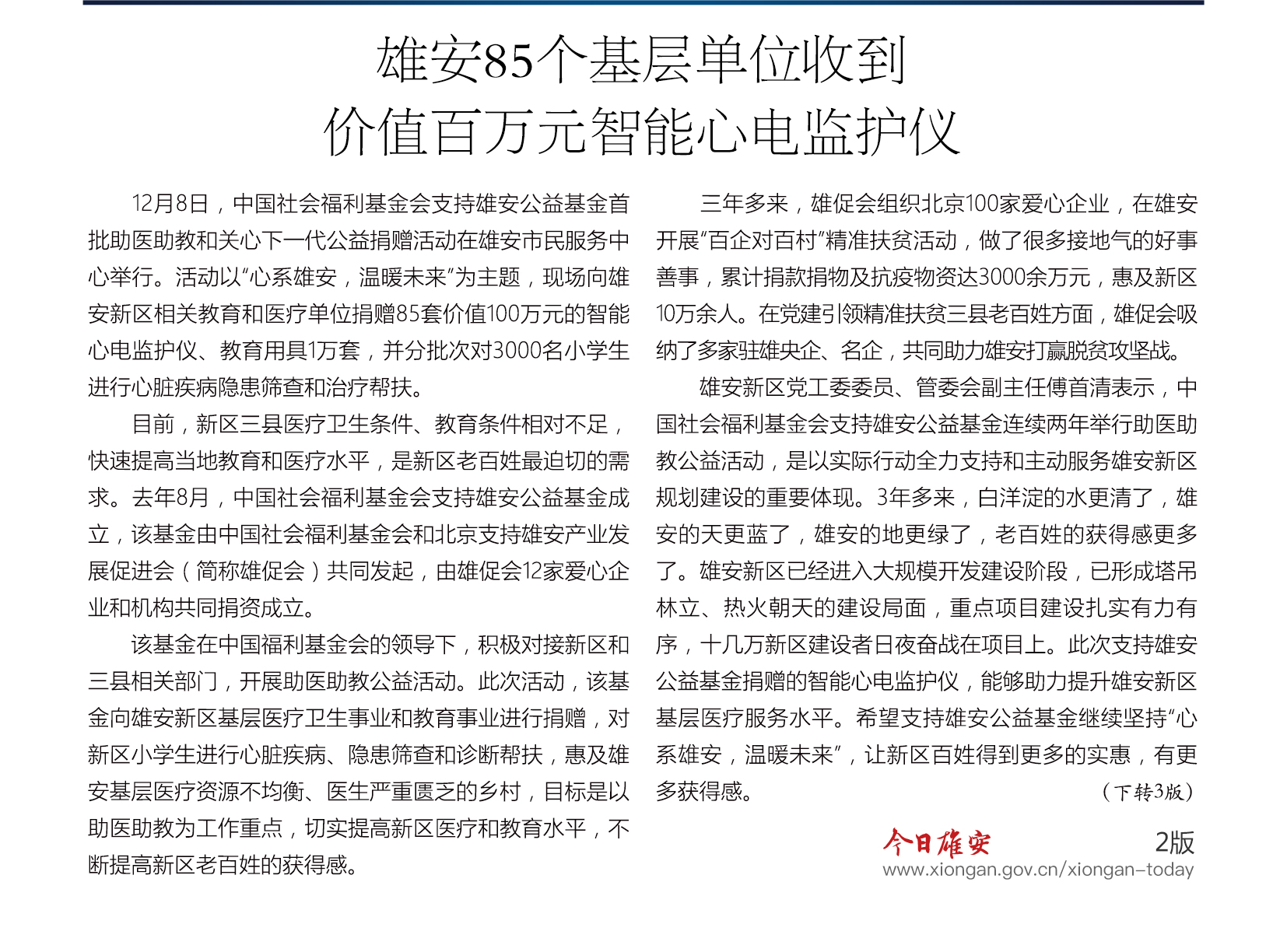 12月8日,中国社会福利基金会支持雄安公益基金首批助医助教和关心下一代公益捐赠活动在雄安市民服务中心举行。