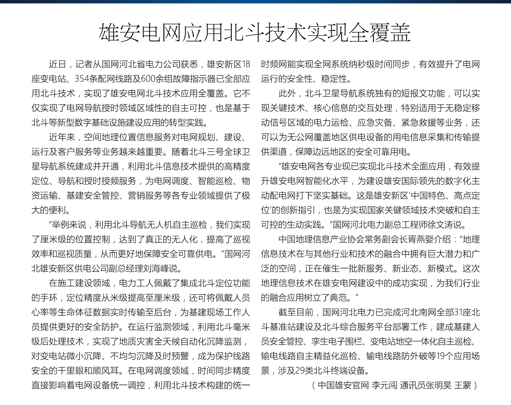 雄安电网应用北斗技术实现全覆盖
