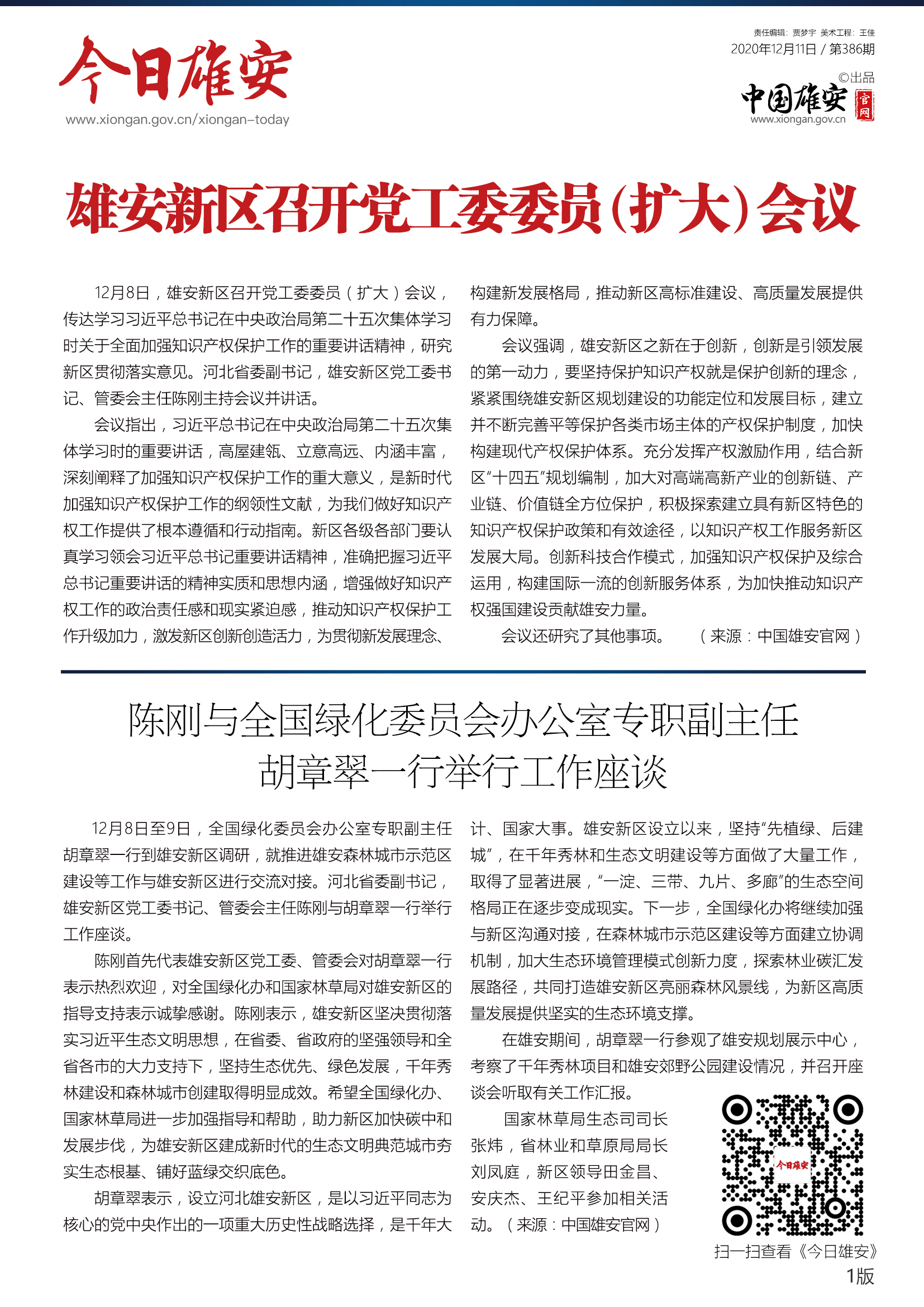《今日雄安》 2020年12月11日 第386期