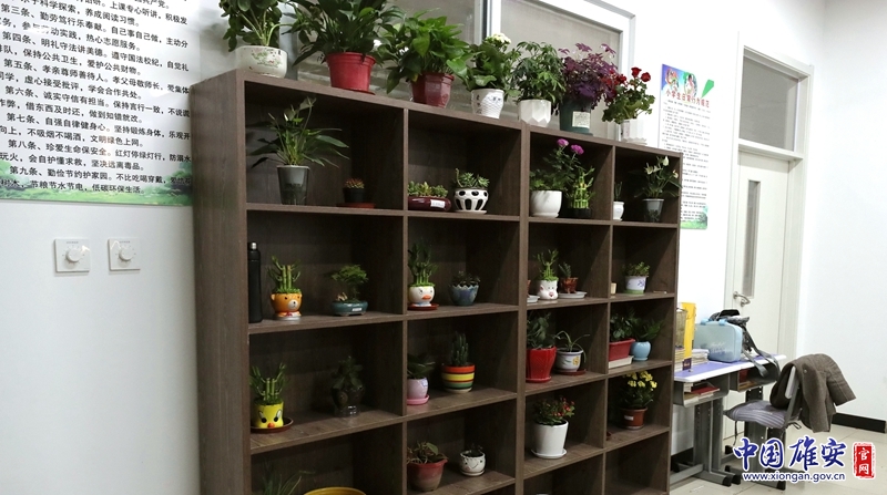 教室内摆放着学生们从家里带来的各种绿植。中国雄安官网记者牛思佳 摄