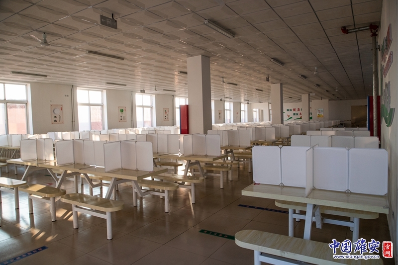 学校食堂设置了隔板,实行分批次、分时段用餐。中国雄安官网记者牛思佳 摄