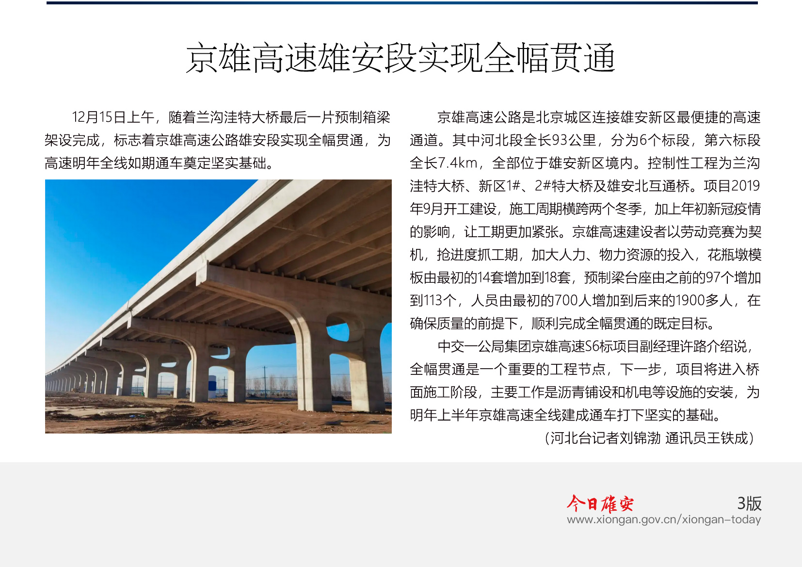 这条高速公路建成通车将把天津、雄安新区、石家庄三地紧密联结起来。