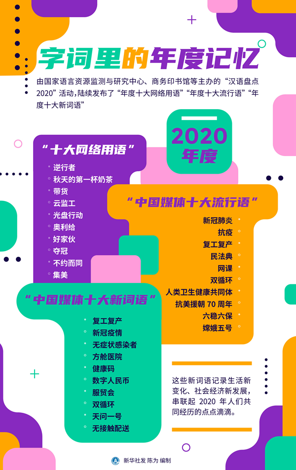 这些新词语记录生活新变化、社会经济新发展,串联起2020年人们共同经历的点点滴滴。