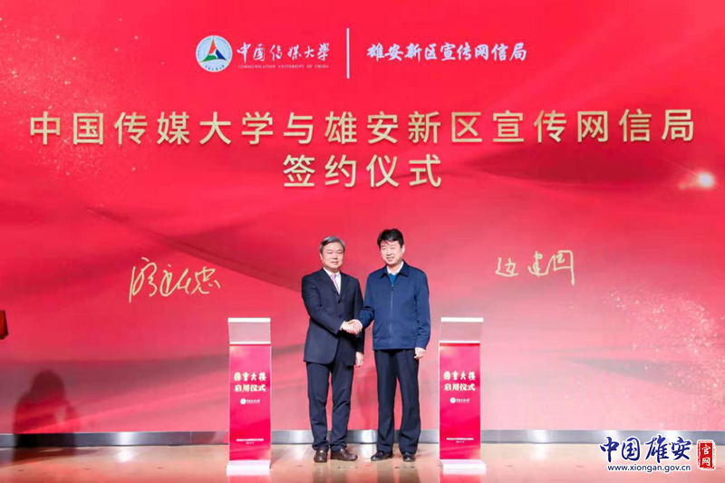 边建国指出,设立雄安新区,是以习近平同志为核心的党中央作出的一项重大历史性战略选择。当前,雄安画卷徐徐铺展,新区大规模开工建设大幕已经拉开,近300个工地塔吊林立、热火朝天。雄安新区正在形成新闻富矿,在当前和今后相当长一段时期,新闻舆论工作都是新区全局工作的重中之重。中国传媒大学是我国传媒领域最高学府,我们建立战略合作关系,将充分发挥中国传媒大学学科和人才优势,通过开展媒体融合业务研究咨询、开展高水平科研成果转化、开展人才双向交流、加强全媒体人才培养等,助力雄安新区媒体阵地建设。