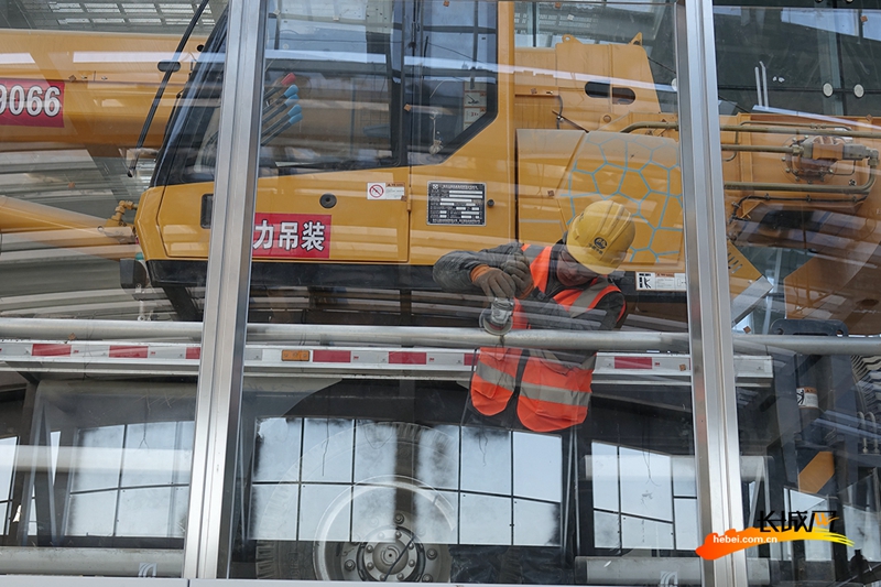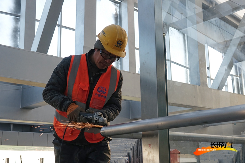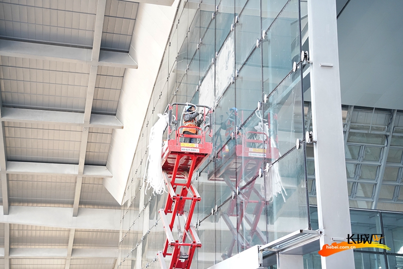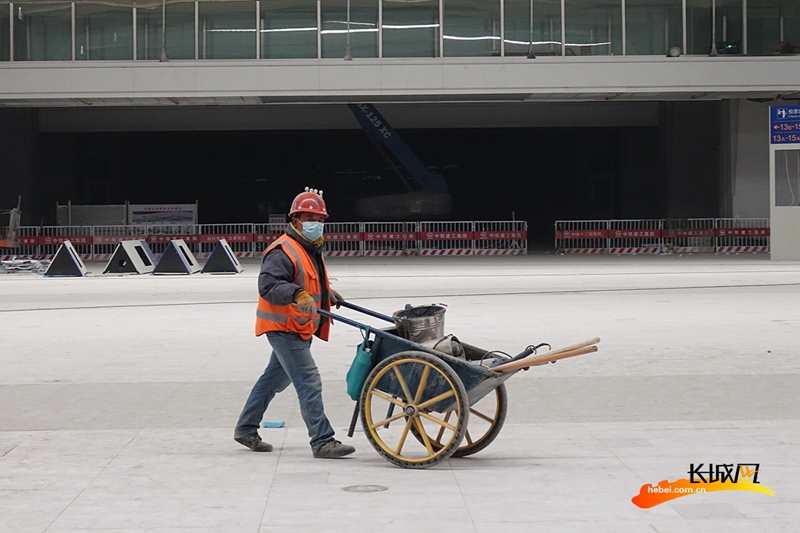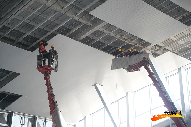 12月16日,雄安站站房内,吊顶、打磨、清理、装扮……建设者们正在紧张地进行装饰装修工作,在雄安站开通运营最后的冲刺阶段,留下最美的身影。(记者 胥文燕 王守一)