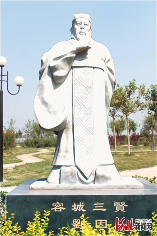 容城三贤广场的刘因雕塑。(张冬娈供图)