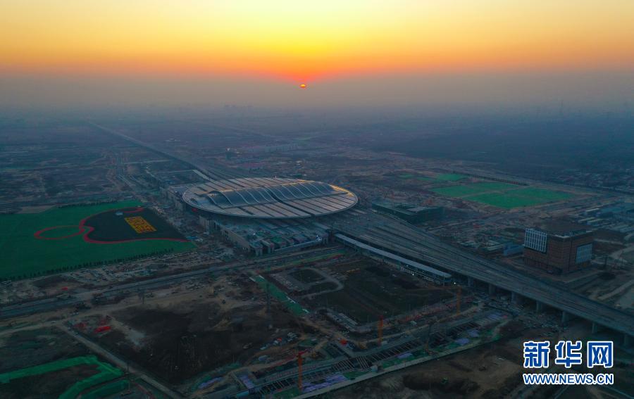 这是京雄城际铁路雄安站(12月20日无人机照片)。