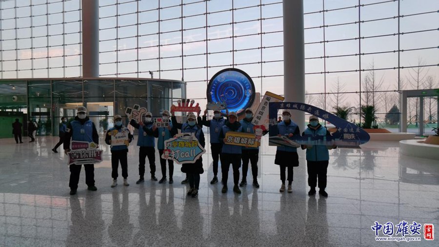 12月27日,志愿者在雄安站迎接旅客进站。刘东尧 摄