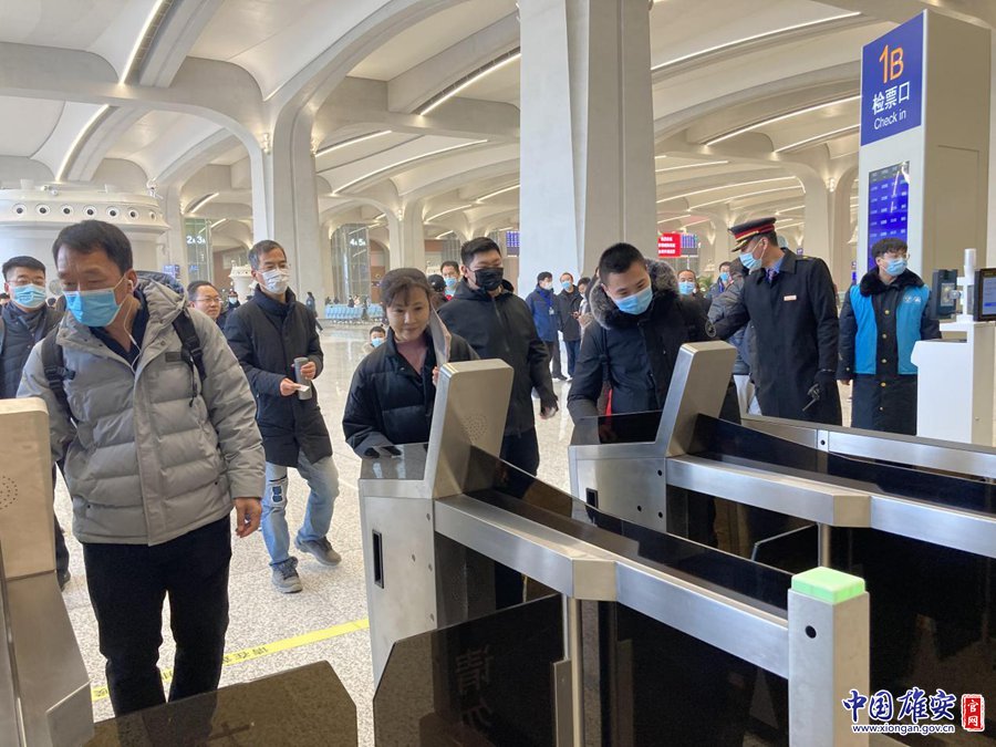 12月27日,在雄安站候车大厅,旅客正在排队检票。黄海 摄