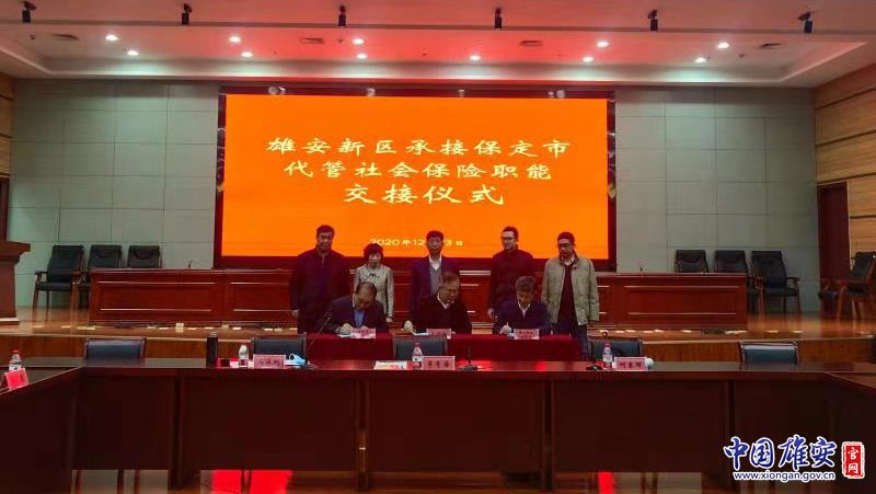 中国雄安官网12月29日电 近日,雄安新区承接保定市代管社会保险职能交接仪式在保定市举行,仪式上,雄安新区公共服务局、保定市人社局签署了社会保险移交事项备忘录,决定从2021年1月1日起雄安新区公共服务局全面履行对新区三县社会保险工作的管理职能,标志着雄安新区社会保障事业改革发展翻开了崭新的一页,进入了新的历史起点。河北省人社厅、保定市人社局、雄安新区公共服务局相关领导及工作人员共同见证了此次职能交接。