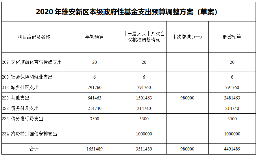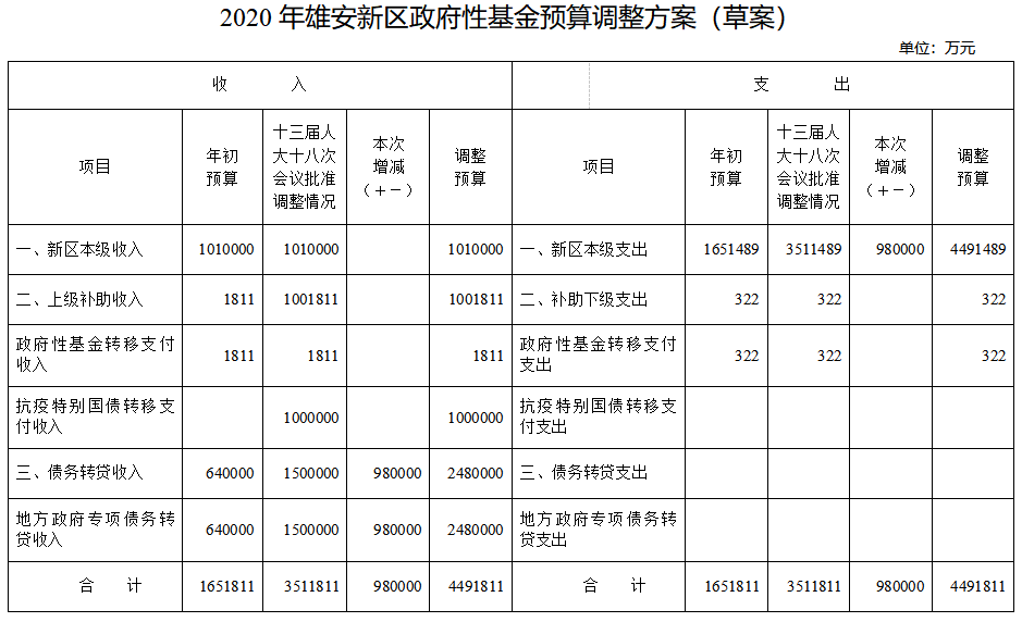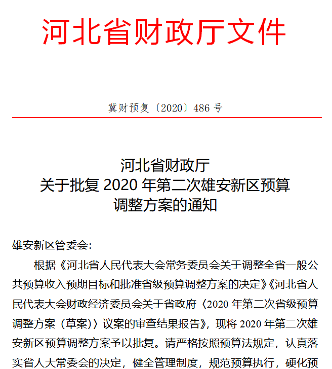 河北省财政厅关于批复2020年第二次雄安新区预算调整方案的通知