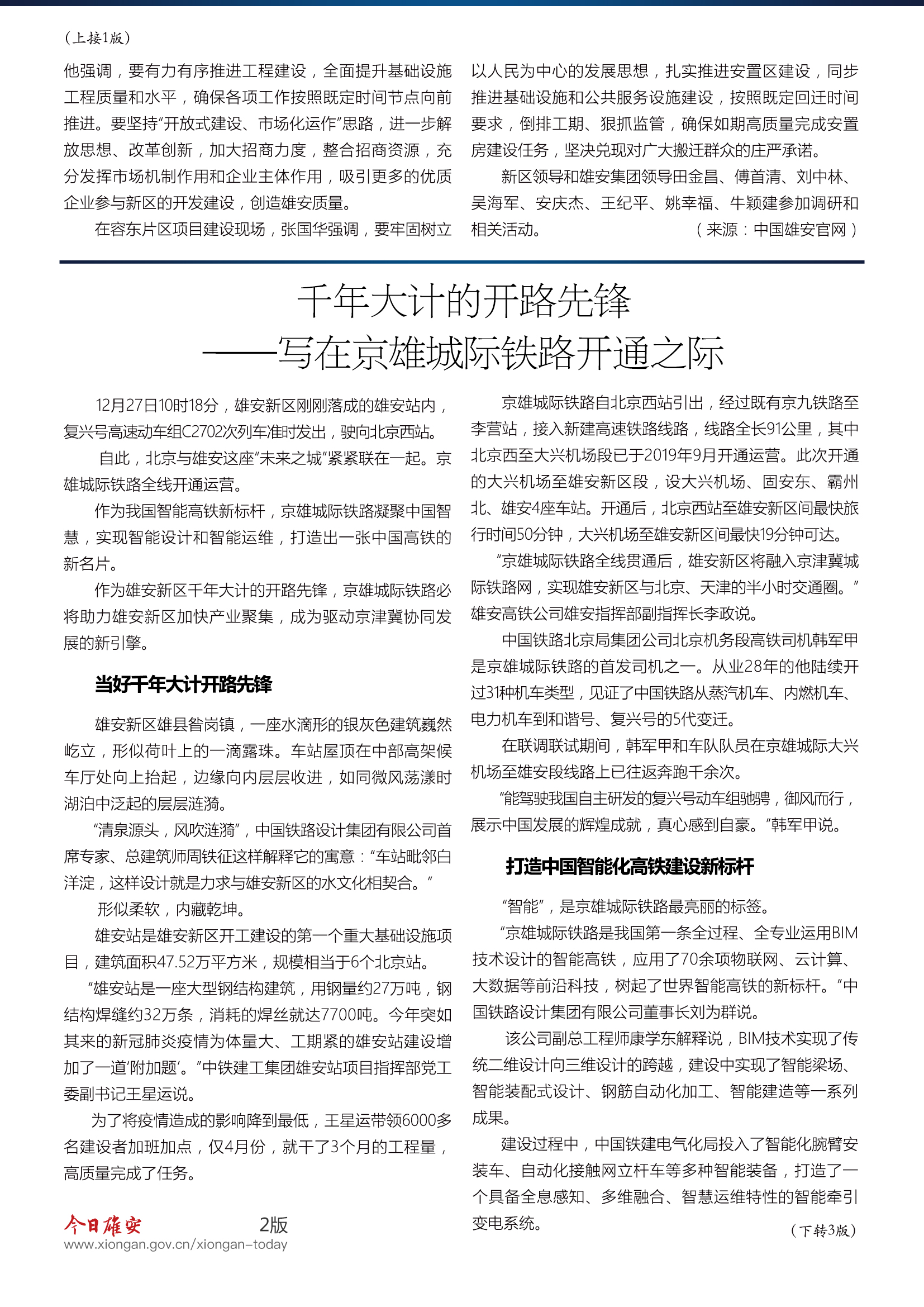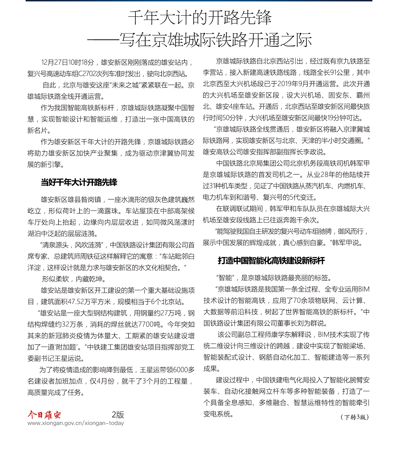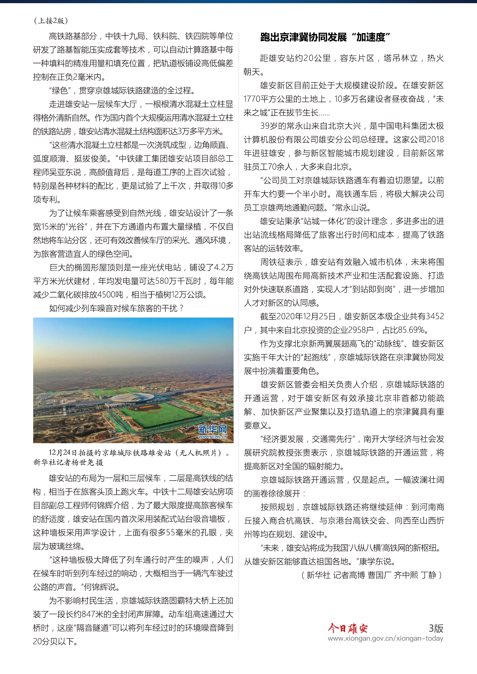 12月27日上午,京雄城际铁路全线开通运营,“轨道上的京津冀”再添新干线。