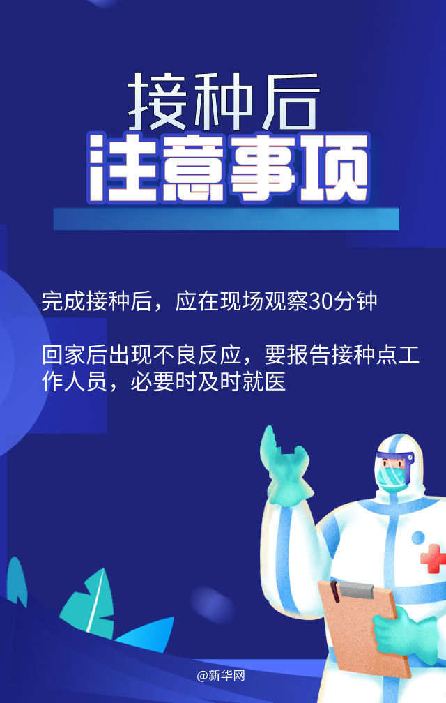 国家卫健委医政医管局监察专员焦雅辉表示,为做好疫苗接种的安全保障,一是要求接种点既符合接种条件,也要具备医疗救治条件,二是把接种单位划分区域,由二级以上综合医院负责责任区内的医疗保障工作。也提醒接种者,要实事求是地向医务人员反馈身体健康状况,接种以后在接种点停留30分钟。
