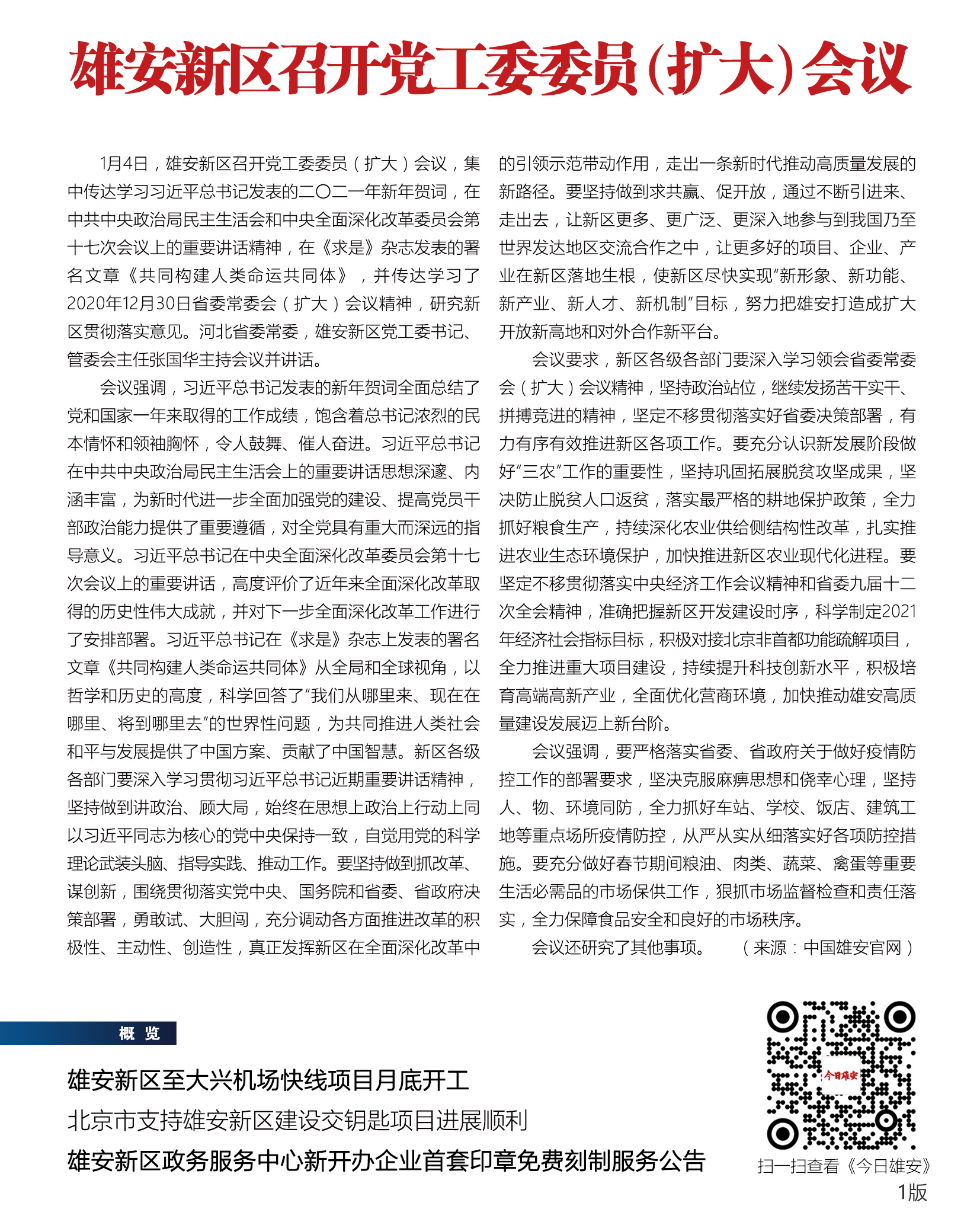 《今日雄安》 2021年1月4日 第395期