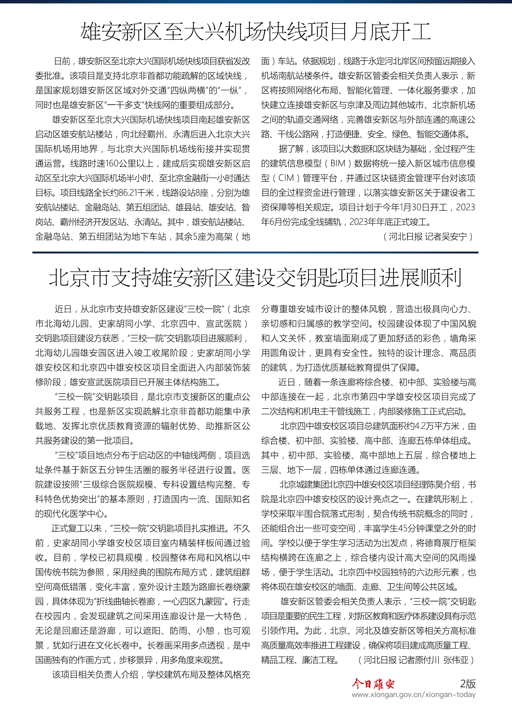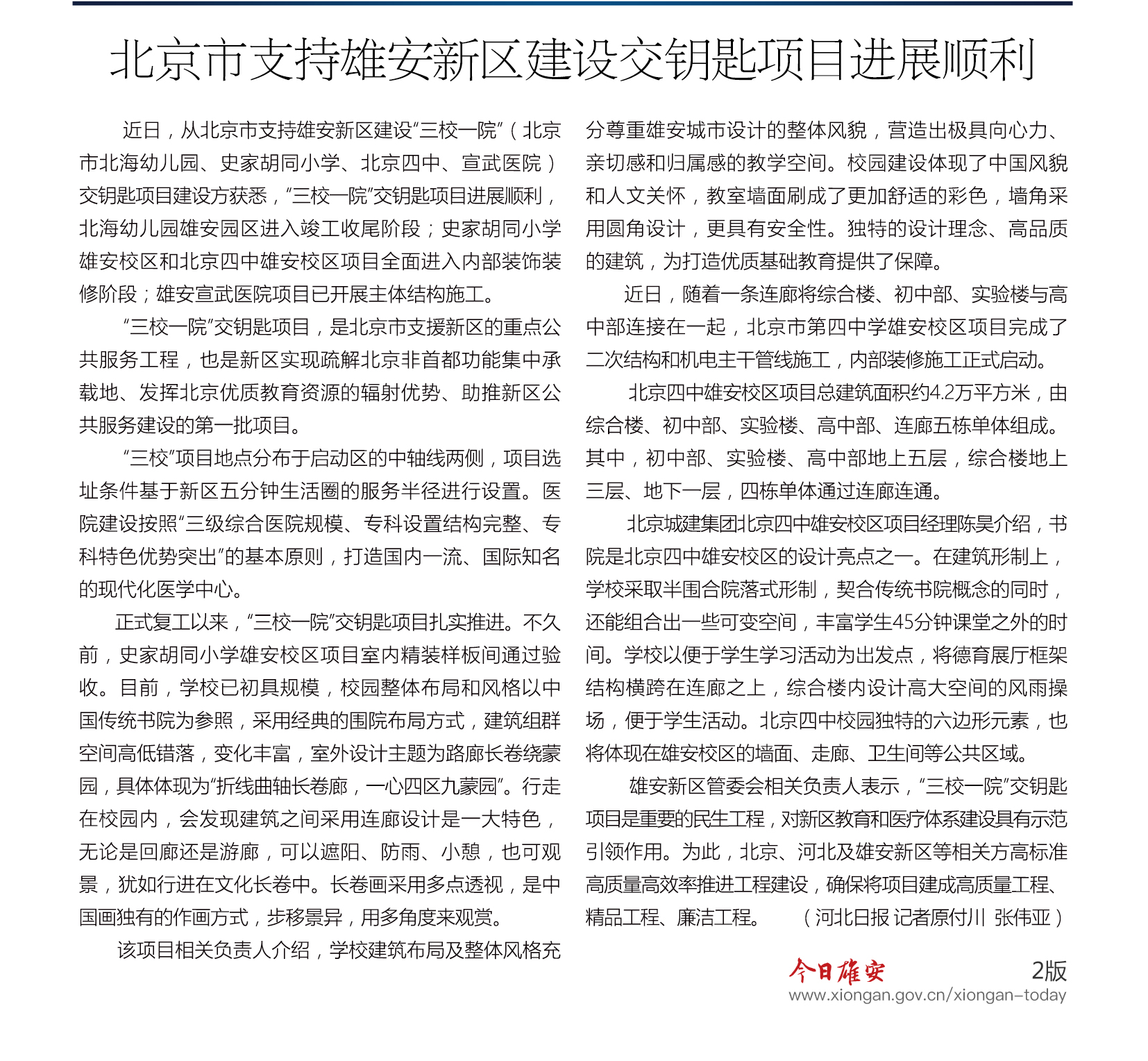 北京市支持雄安新区建设交钥匙项目进展顺利 “三校一院”将打造高质量精品工程