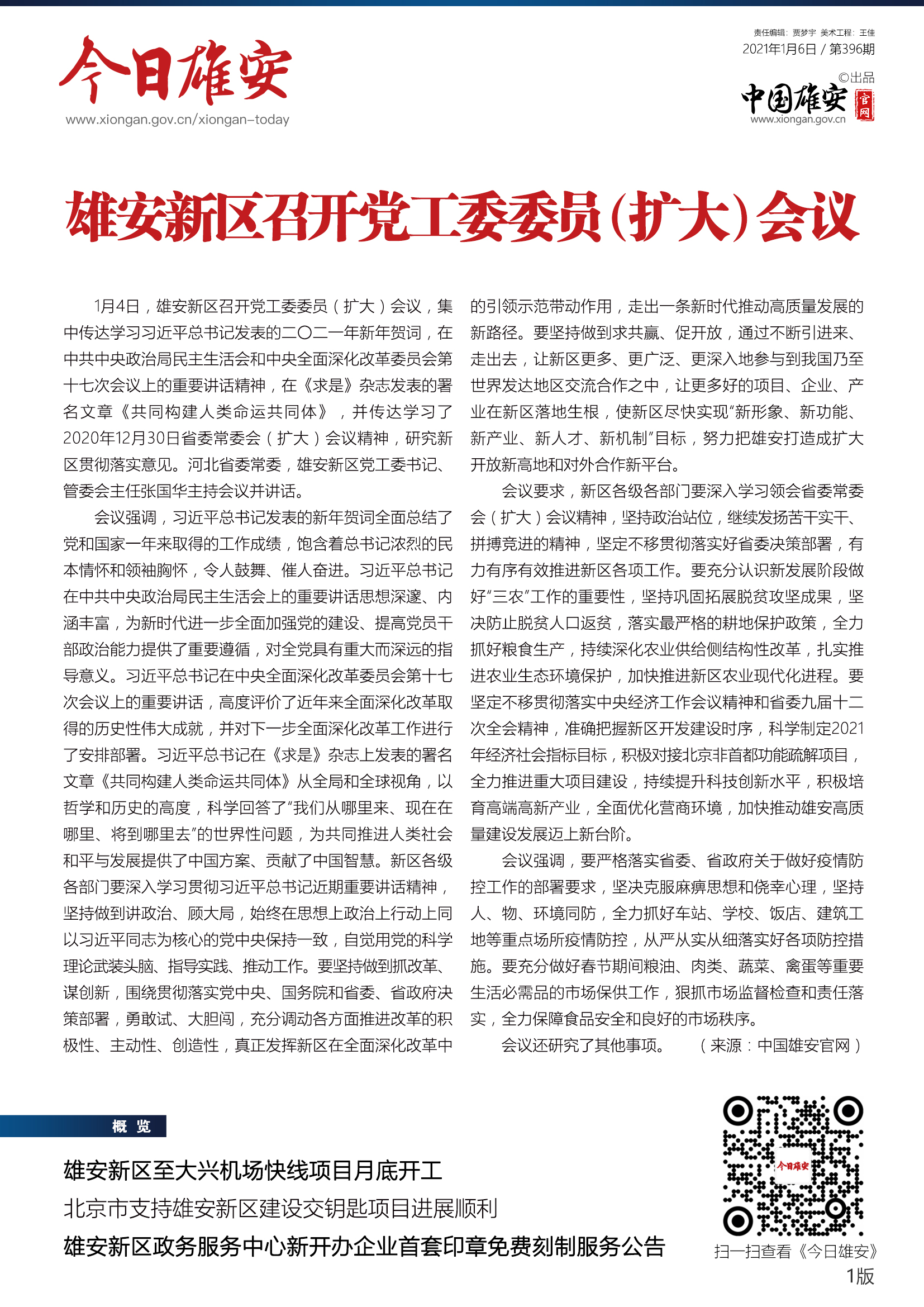 《今日雄安》 2021年1月6日 第396期