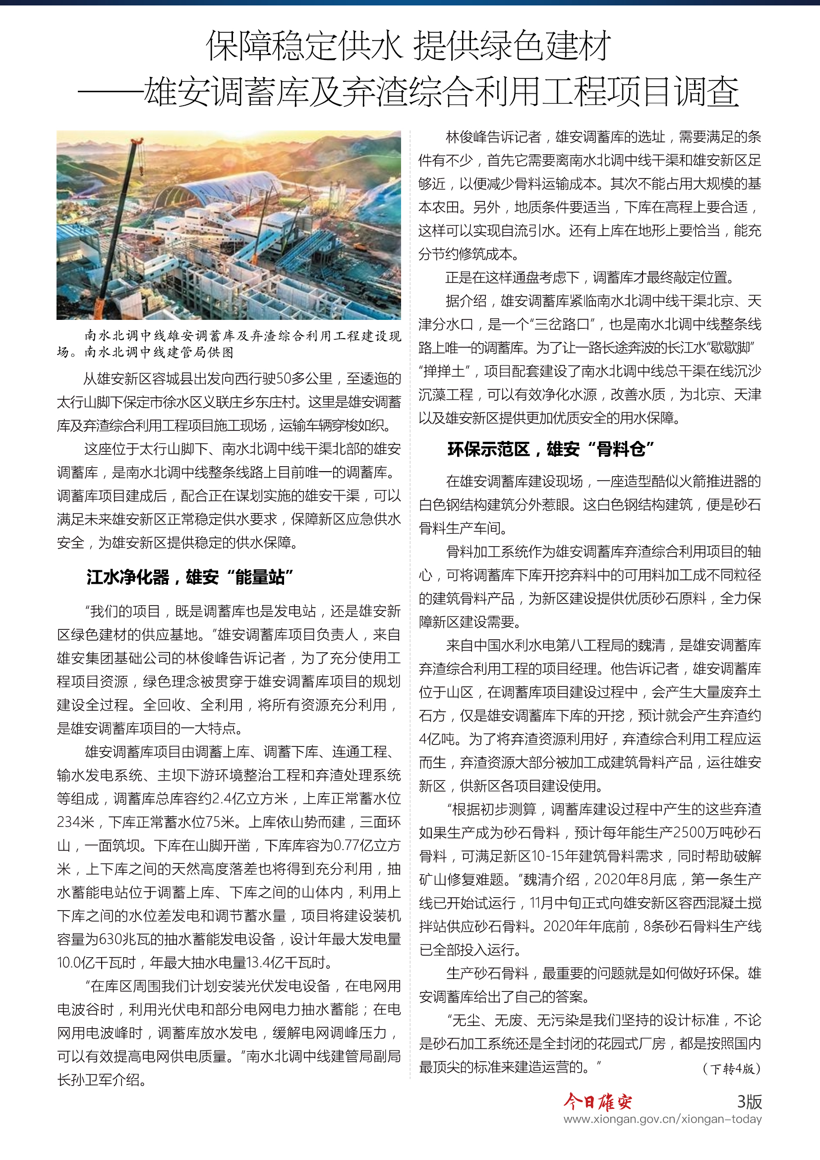 保障稳定供水 提供绿色建材——雄安调蓄库及弃渣综合利用工程项目调查