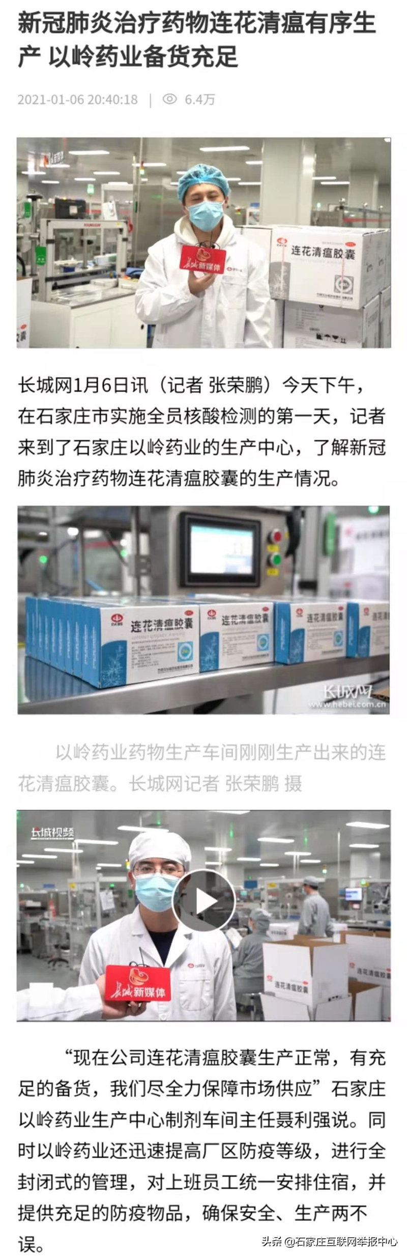 近日,网传“以岭药业紧急通知”,称“石家庄市政府要求企业停工停产” “目前连花清瘟库存告急”。6日,长城网记者在石家庄以岭药业生产中心实地了解情况,石家庄以岭药业生产中心制剂车间主任表示,目前连花清瘟胶囊生产正常,备货充足,全力保障市场供应。请广大网民不传谣、不信谣,石家庄疫情防控工作正在社会各界共同努力下有力推进,让我们共同努力,战胜疫情!