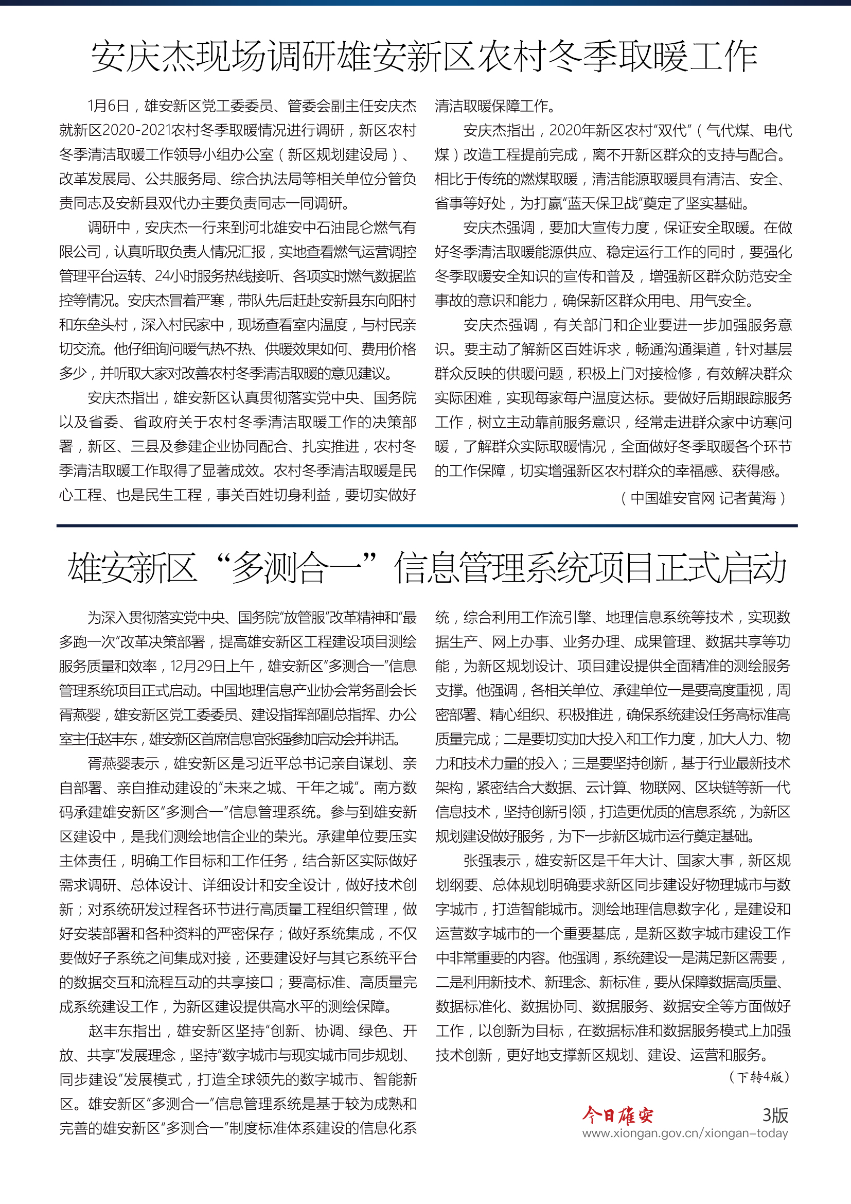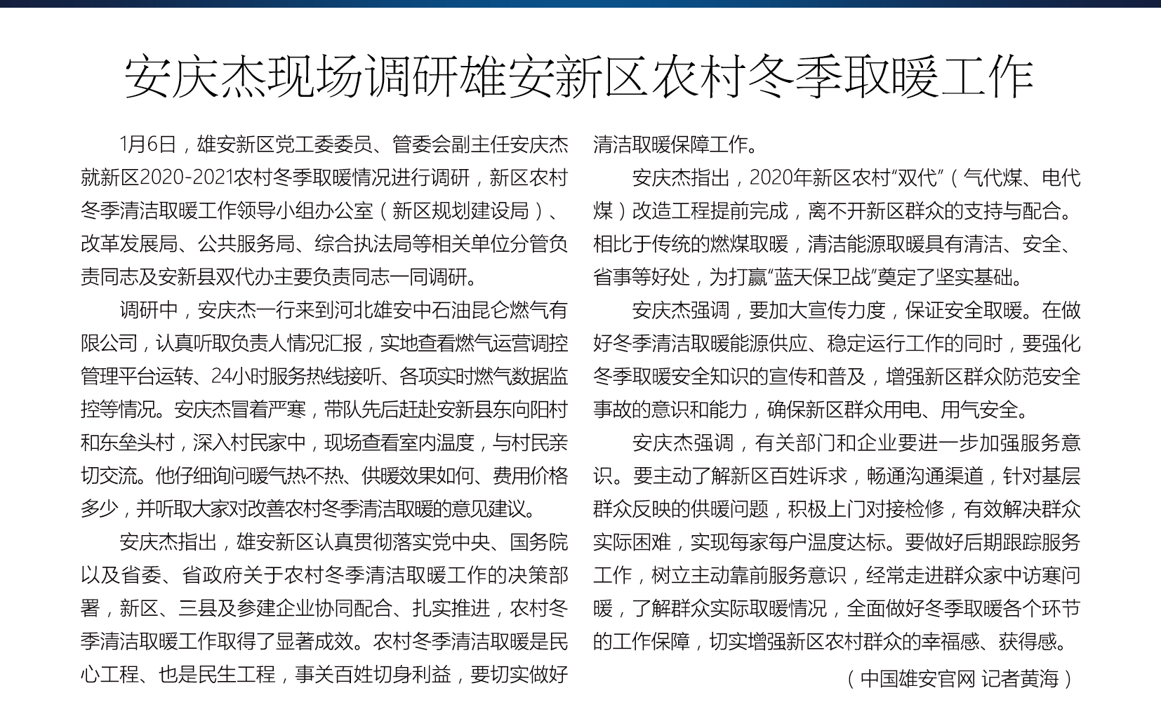 全面做好冬季取暖各个环节的工作保障,切实增强新区农村群众的幸福感、获得感。