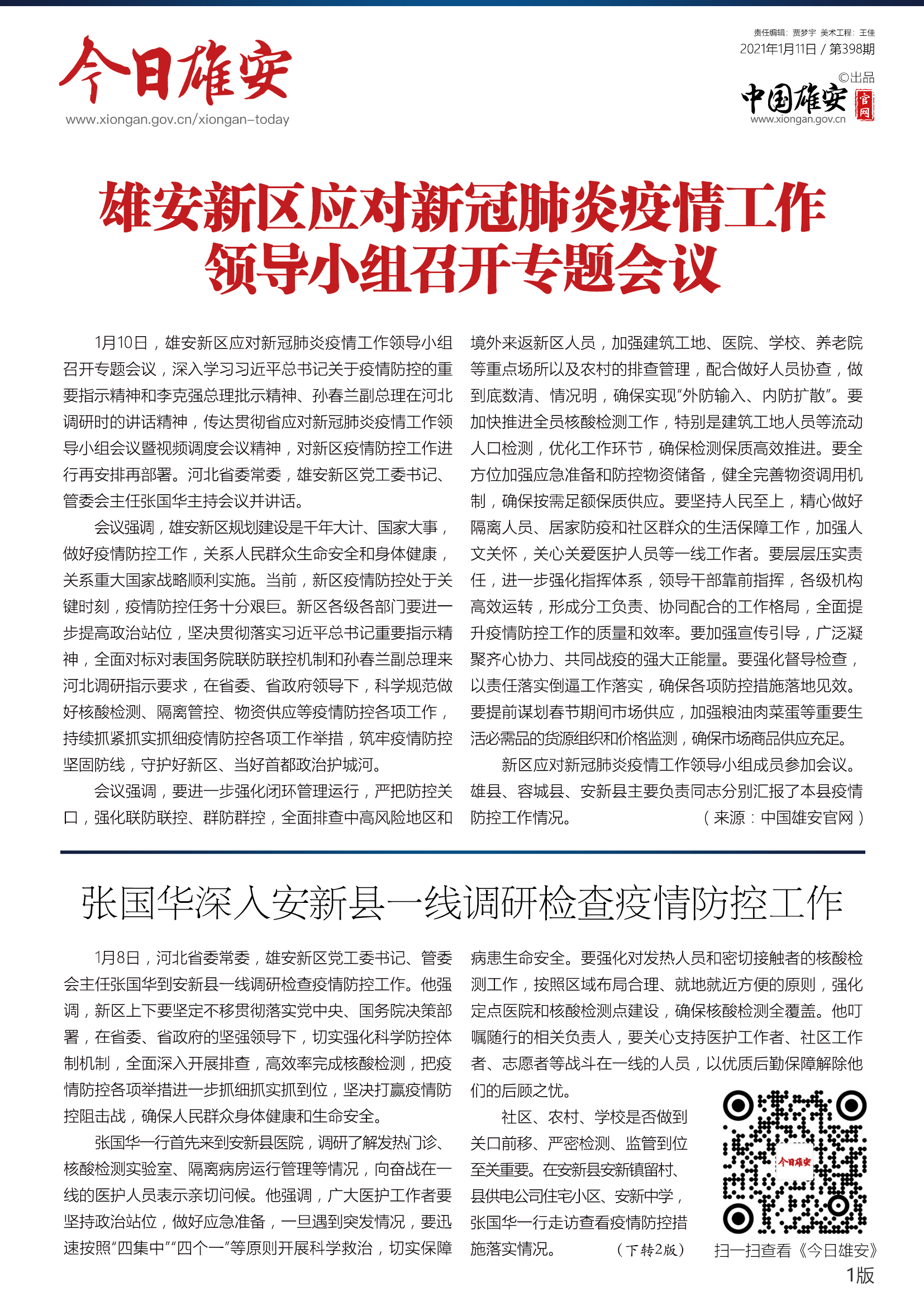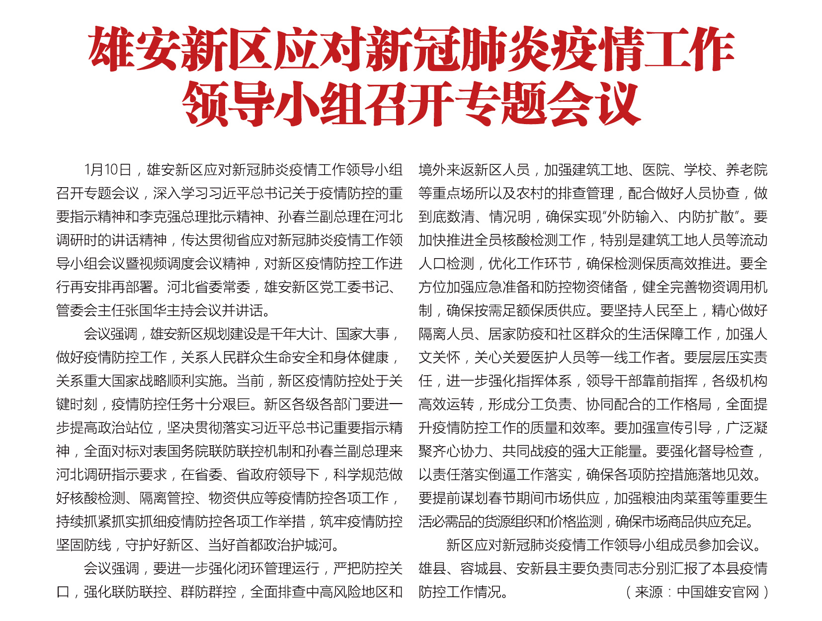 雄安新区应对新冠肺炎疫情工作领导小组召开专题会议