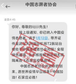 注意!这条以“中国志愿者协会”名义发布的疫情防控志愿者招募短信,是假的。