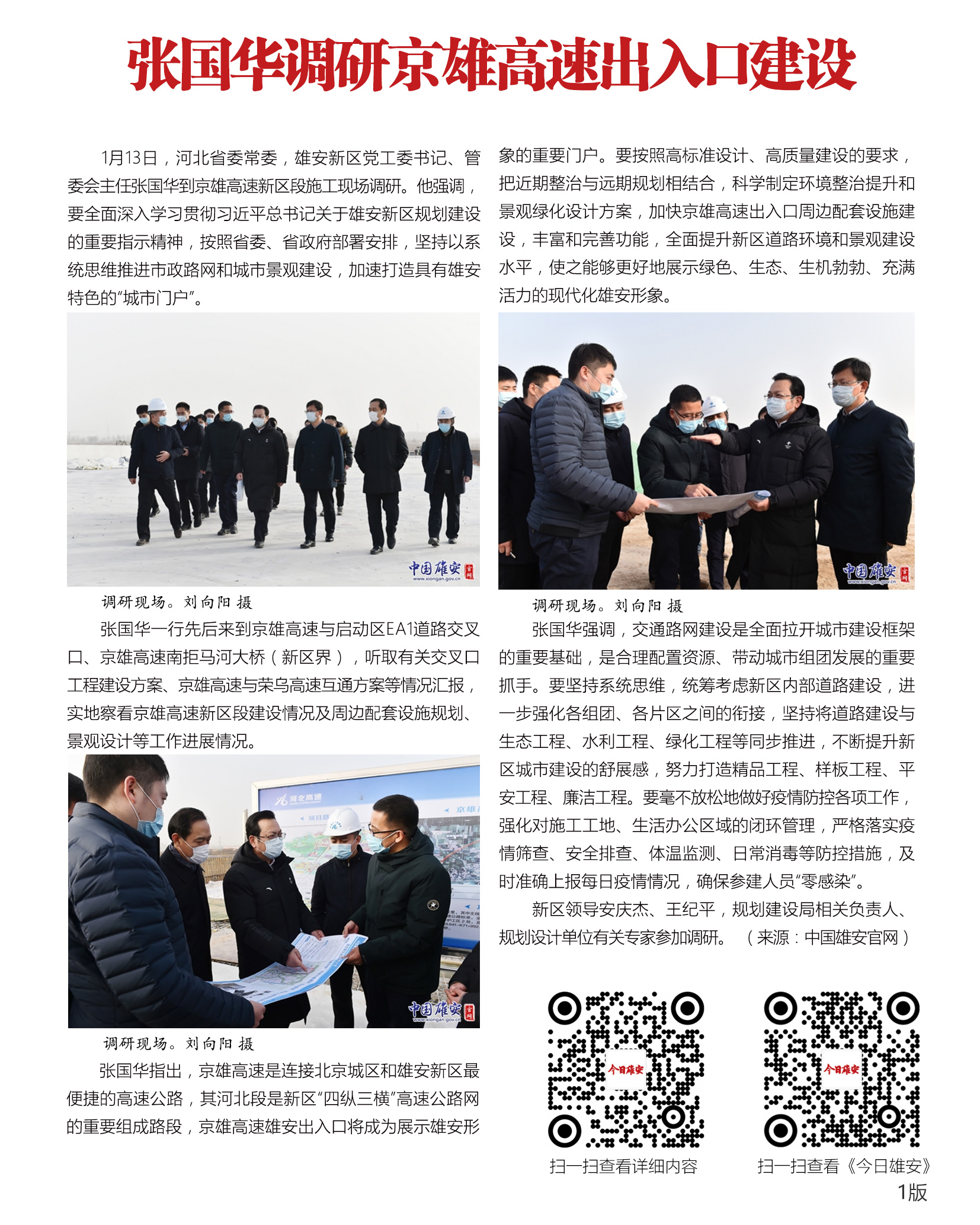 坚持以系统思维推进路网及景观建设,加速打造具有雄安特色的“城市门户”。