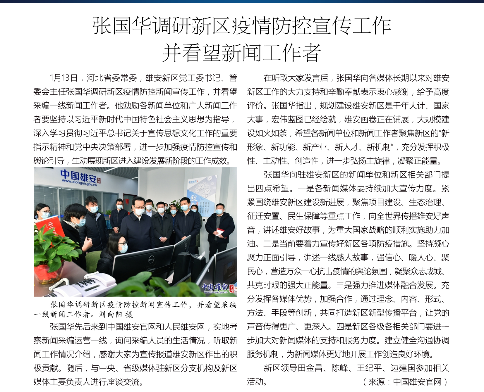 张国华调研新区疫情防控宣传工作并看望新闻工作者