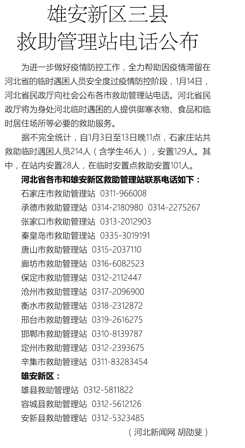 河北省公布市级救助管理站电话 全力帮助因疫情临时遇困人员