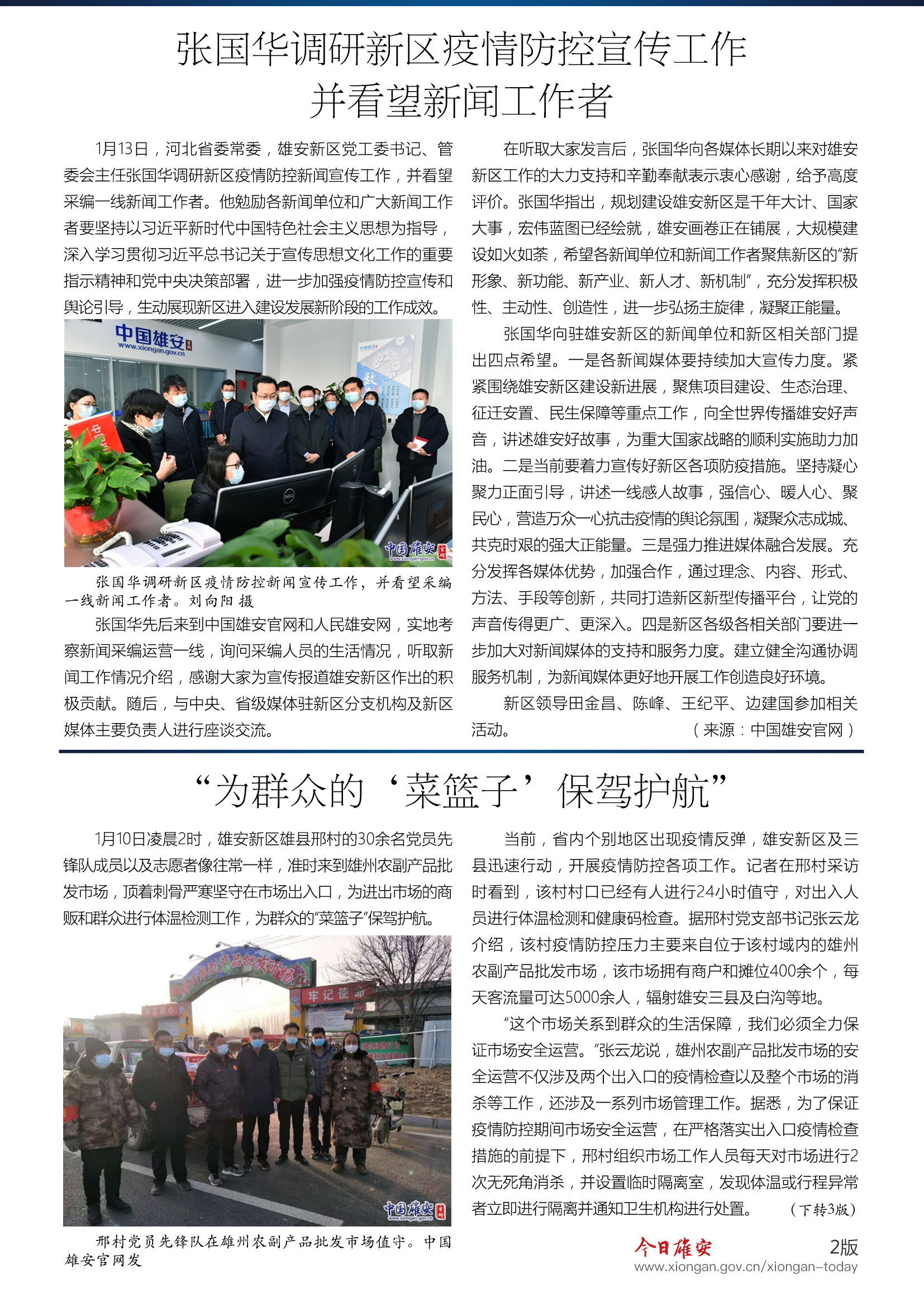 为新区疫情防控和建设发展营造良好舆论氛围。