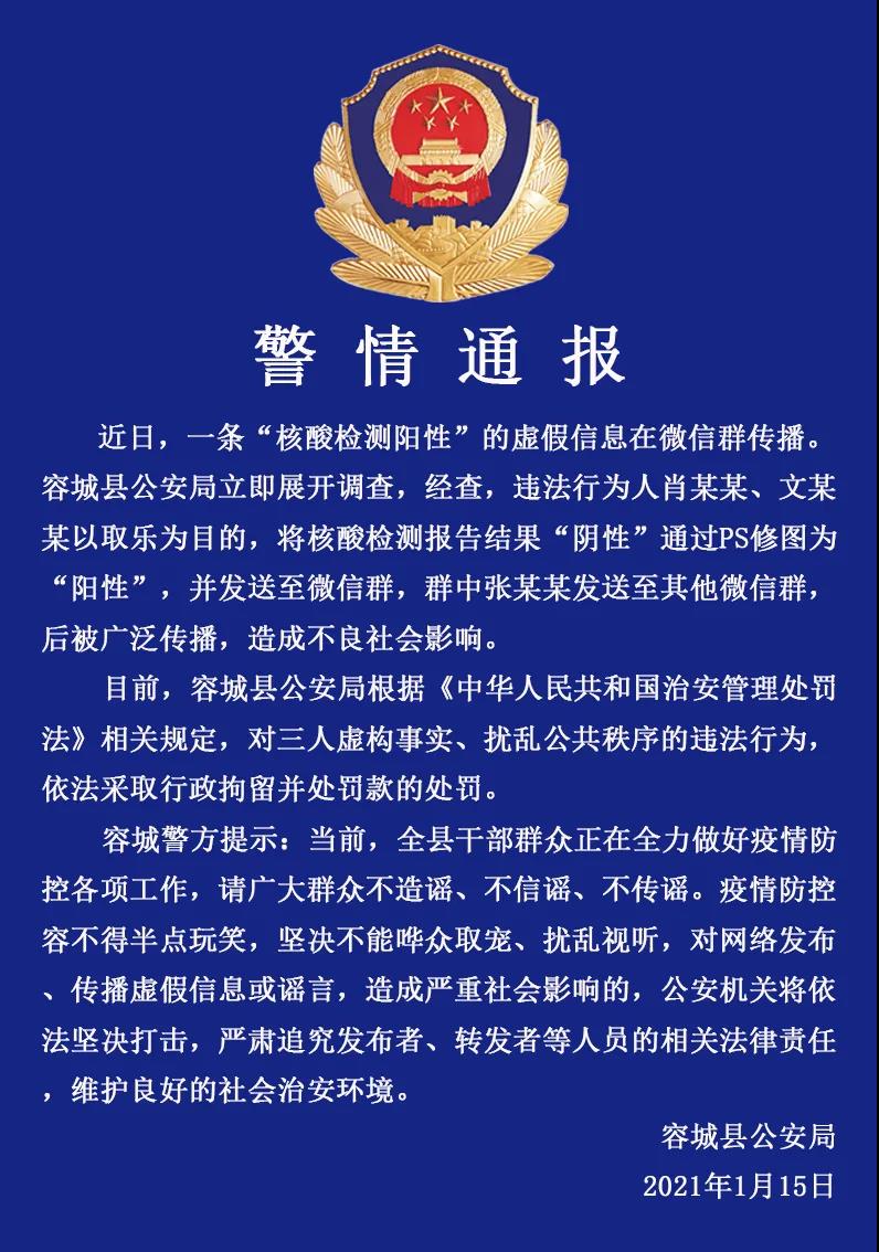 中国互联网联合辟谣平台提醒广大网民,依法依规进行疫情防控,切勿轻易听信。
