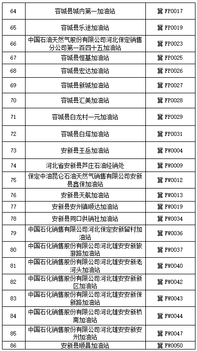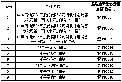 2019年度雄安新区年检合格成品油零售经营企业公示