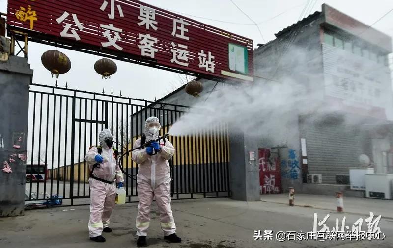 1月15日,石家庄市消防救援支队藁城大队队员两人一组在石家庄市藁城区小果庄公交客运站进行消杀作业。河北日报记者赵杰 摄