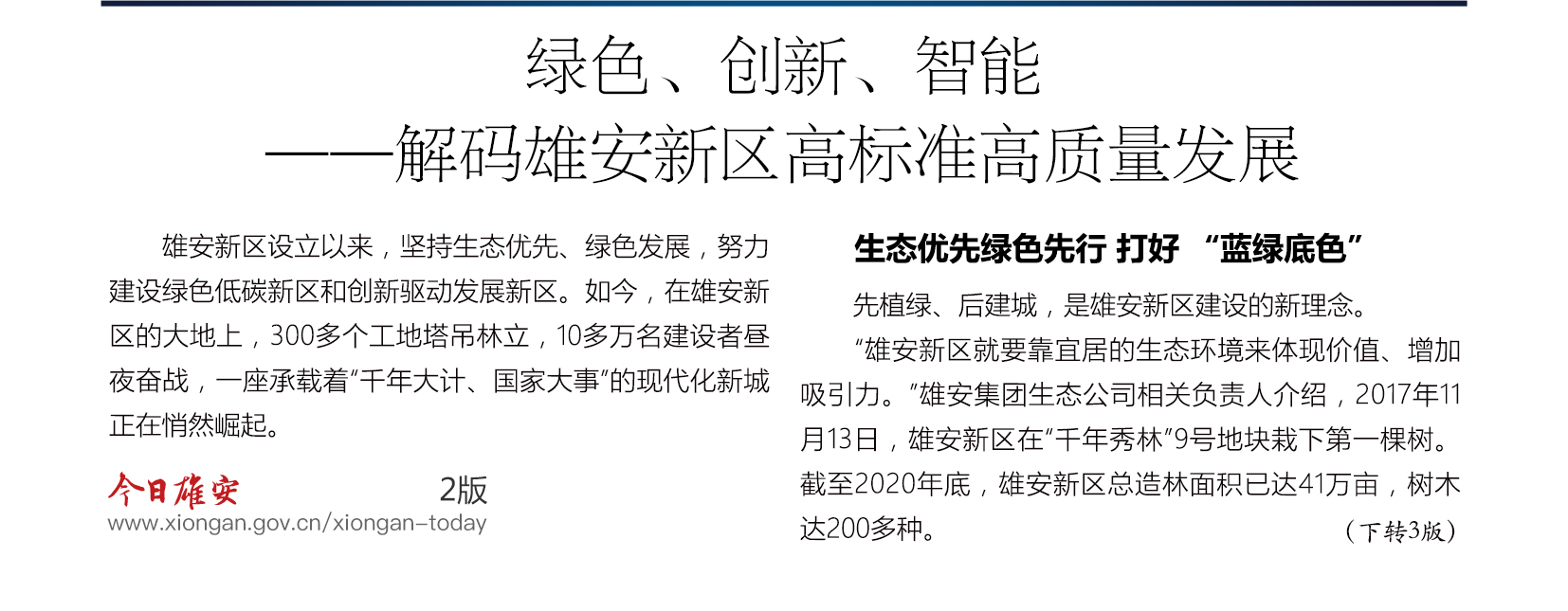 绿色、创新、智能——解码雄安新区高标准高质量发展