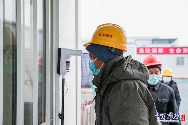工人上工之前需进行体温测量。中国雄安官网记者牛思佳 摄