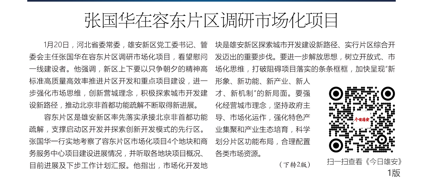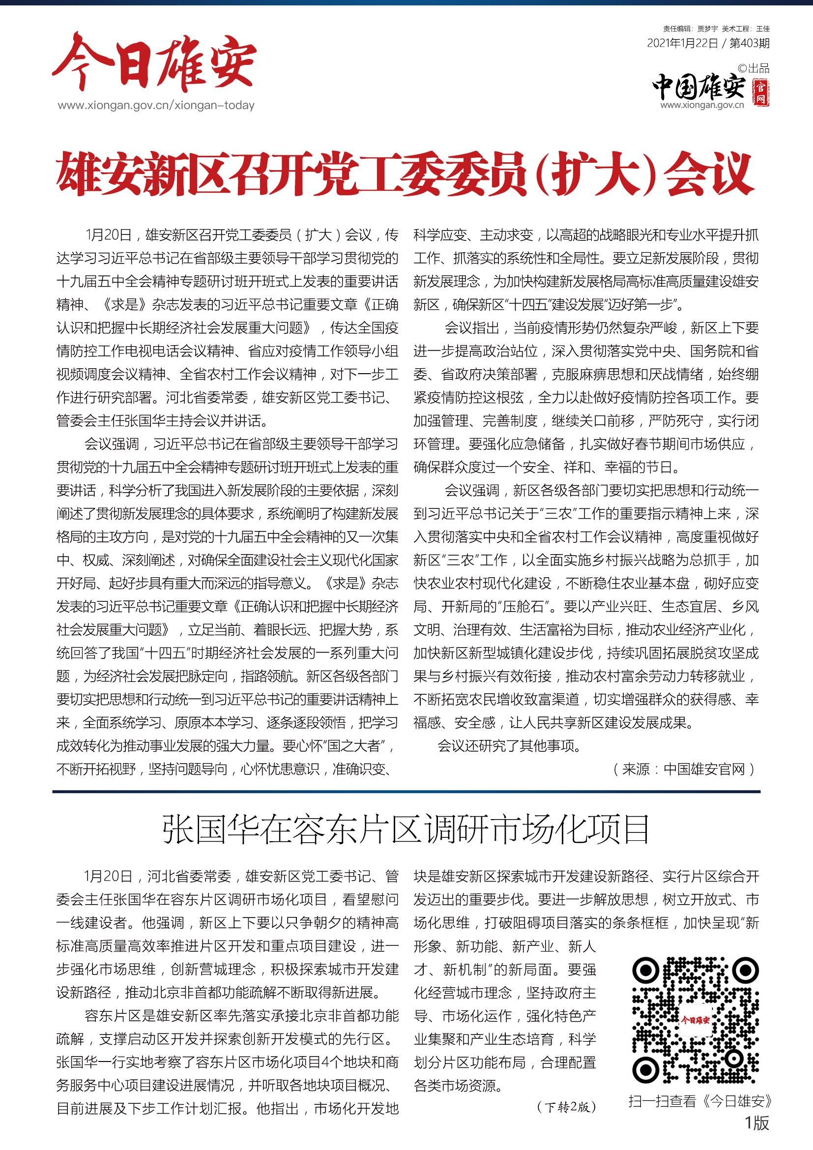 《今日雄安》 2021年1月20日 第402期
