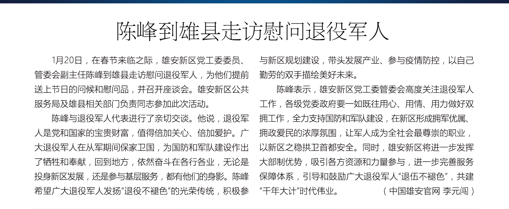 陈峰到雄县走访慰问退役军人