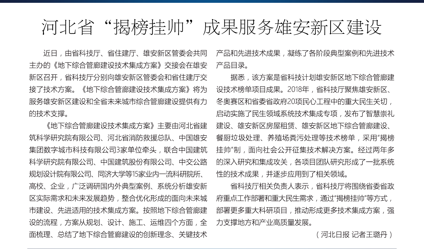 河北省“揭榜挂帅”成果服务雄安新区建设