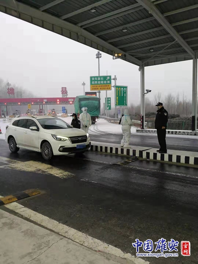 荣乌高速雄县西站南口执勤人员对进出高速车辆进行检查。孙岩 摄