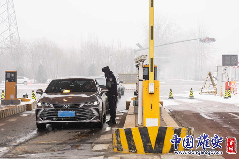 容城县荣乌高速容城收费站,执勤人员对进出高速车辆进行检查。中国雄安官网记者刘东尧 摄