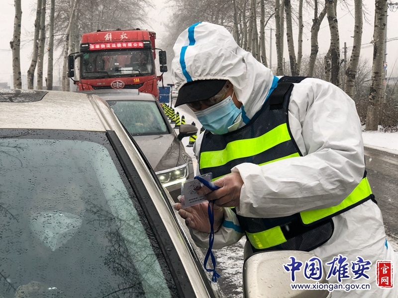 容城徐水交界处,执勤人员在检查过往车辆。中国雄安官网记者高盟 摄