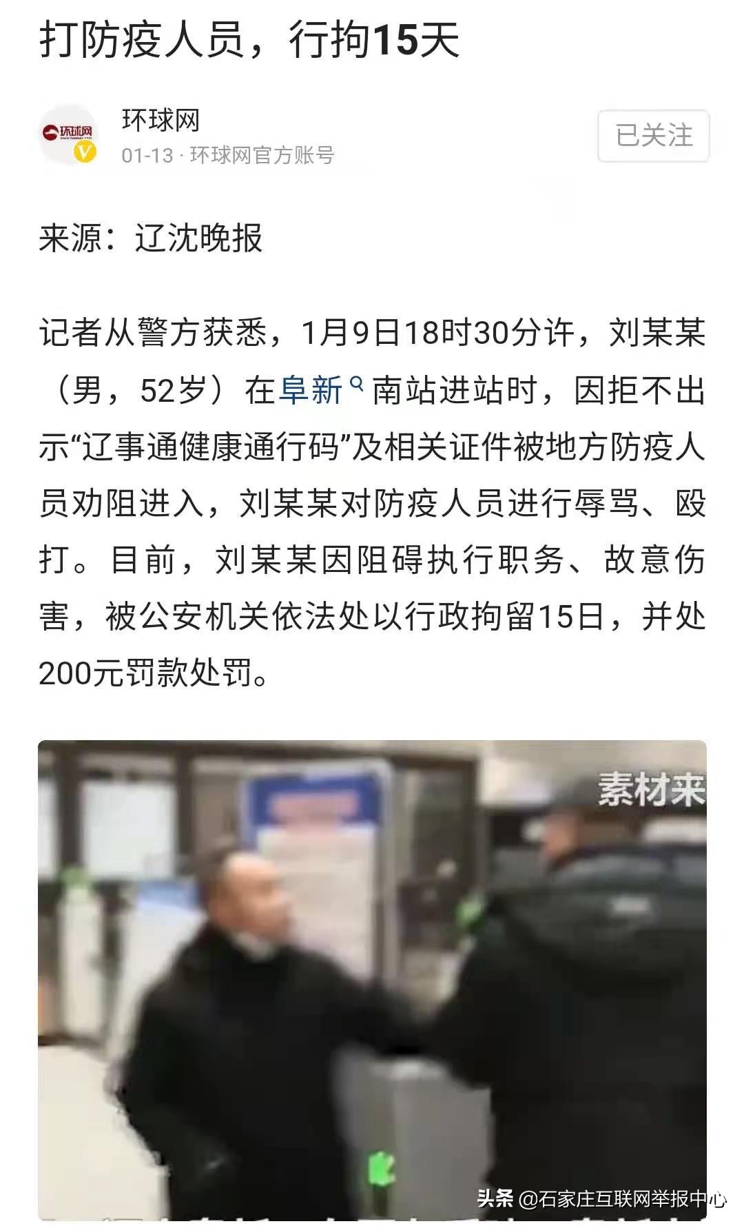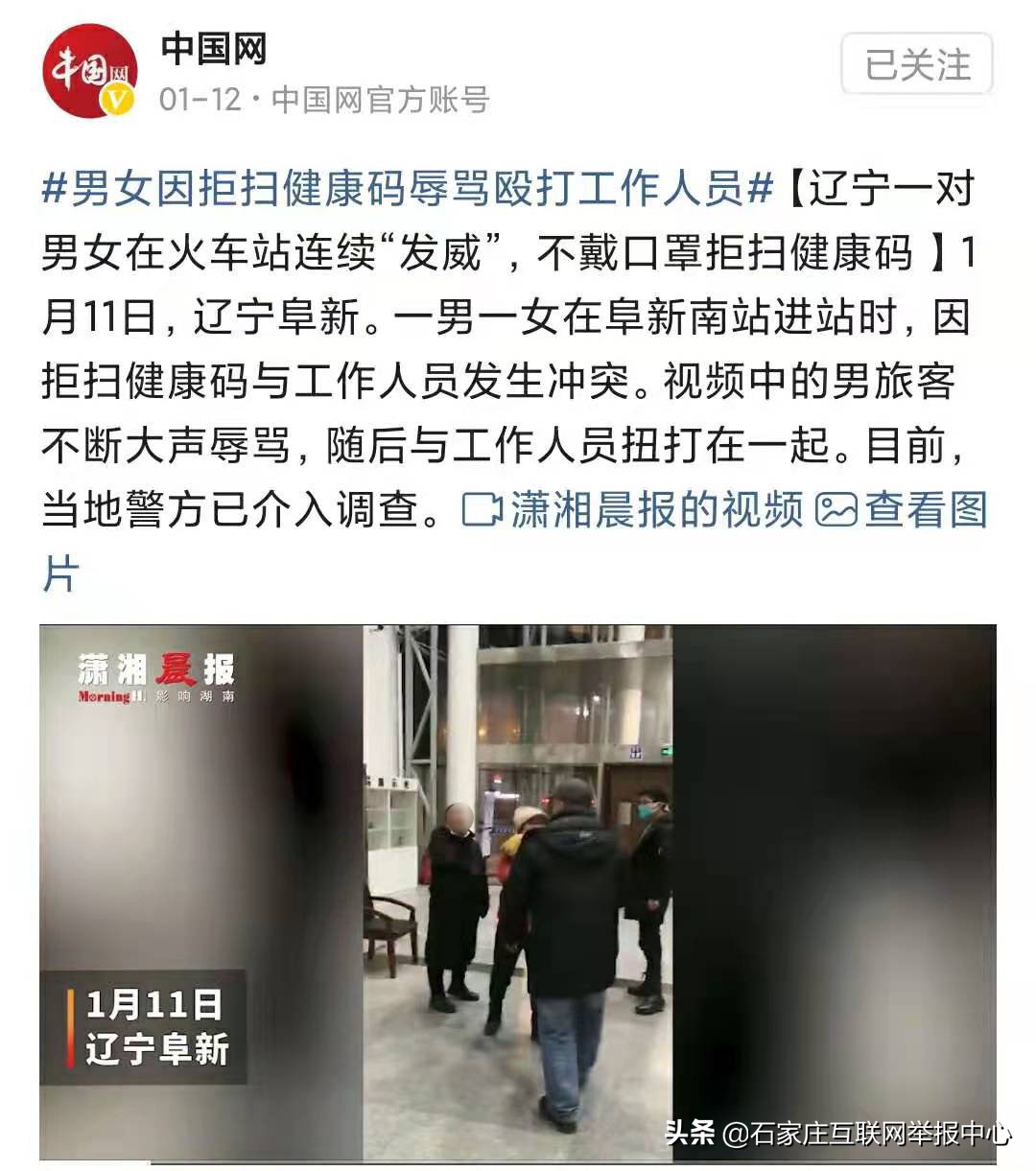 据“高邑网络举报辟谣平台”信息,近日,一段显示一男一女因拒绝出示健康码与车站工作人员发生冲突,并标有 “石家庄高邑县退休副县长”的视频在网络传播。经核查,该信息为“张冠李戴”的不实信息。视频反映事件实际发生在辽宁阜新,一男一女进入阜新南站时拒绝出示健康码被劝阻,男旅客进而辱骂、殴打防疫人员,被给予行拘15日、罚款200元处罚。网传视频恶意添加“石家庄高邑县退休副县长”文字,散布、传播谣言,扰乱公共秩序,公安机关正在对视频编造和转发情况进行核查。 石家庄互联网举报中心:网络不是法外之地,传播、获取信息需谨慎,请广大网民不造谣、不信谣、不传谣,非官方不轻信,未核实不轻传,共同维护清朗网络环境。