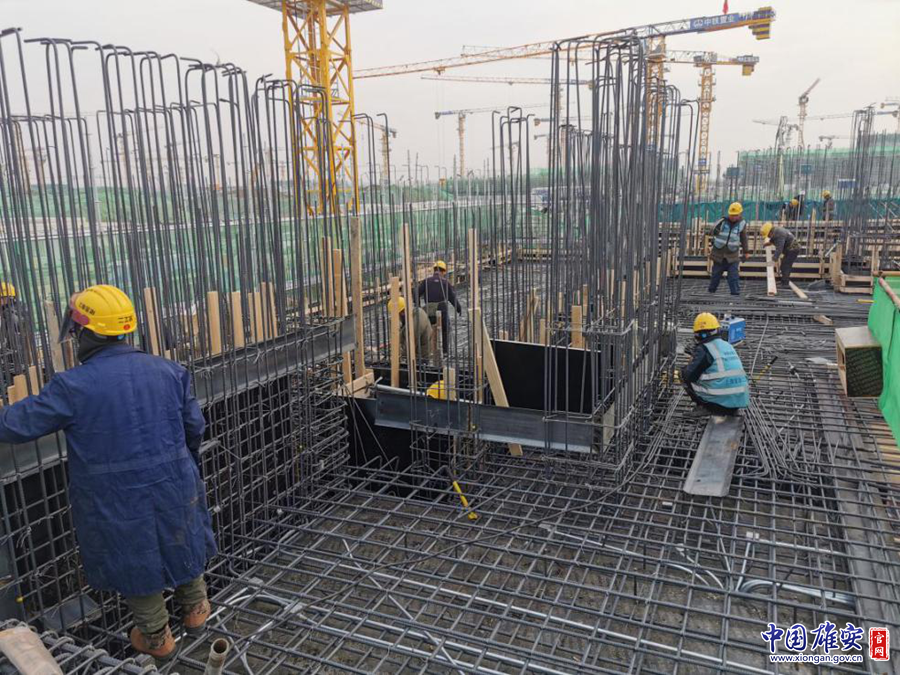 雄东片区A单元安置房及配套设施项目建设现场,建设者冒着严寒施工作业。上海宝冶集团供图