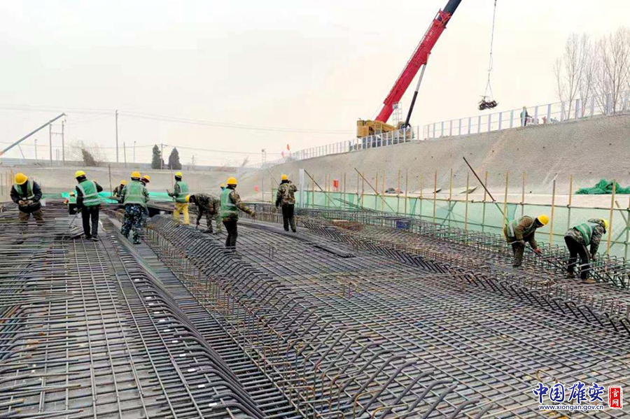 雄安新区启动区NA9、NA11市政道路、综合管廊工程施工现场,建设者冒着严寒进行施工作业。中铁十六局供图