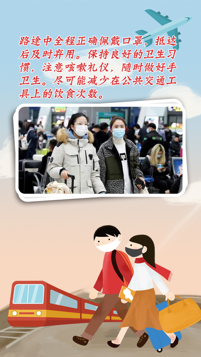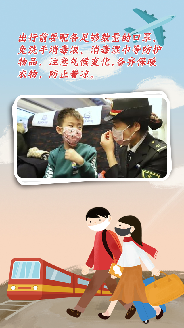 今日,春运拉开大幕,随着人员流动,疫情传播、扩散和蔓延的风险隐患也随之增加,出行途中如何做好个人防护呢?这份出行防护宝典请收藏!疫情防控,我们一起努力!