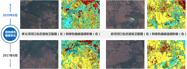 图5 孝义河河口、府河河口生态湿地绿色植被变化