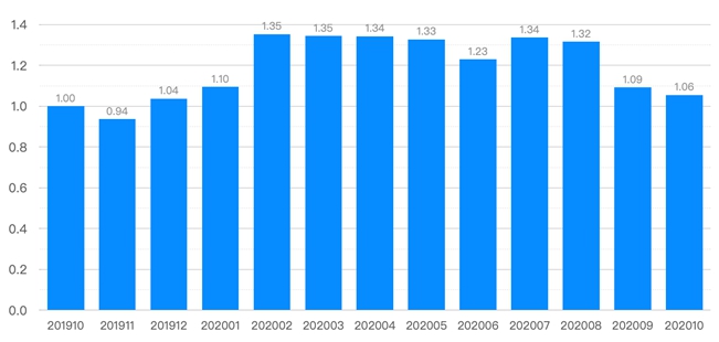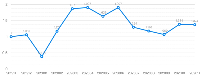 此外,雄安新区对青年人口的吸引力也在持续提升。从图23中可以看出,以2019年11月的人口总量为基数1,2020 年11月,雄安青年常住人口较2019年同期增长了37.35%。越来越多的青年人来到雄安,为雄安注入新的青春力量。