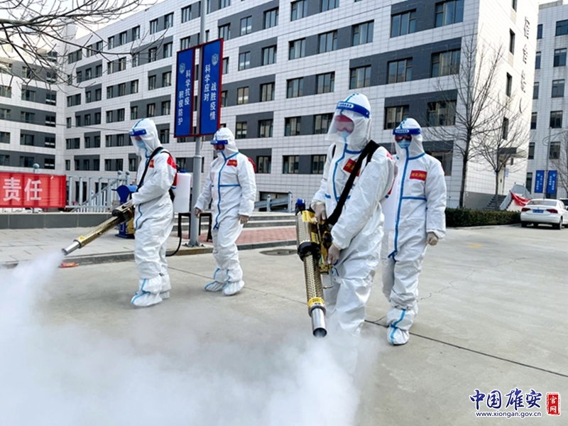 安新县消防救援大队队员正在进行消杀作业。中国雄安官网发